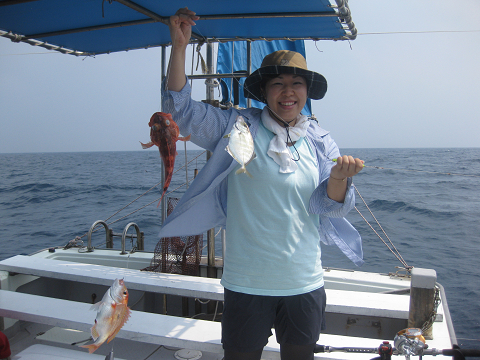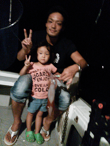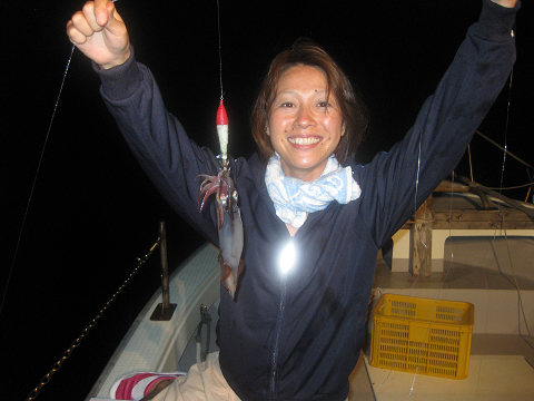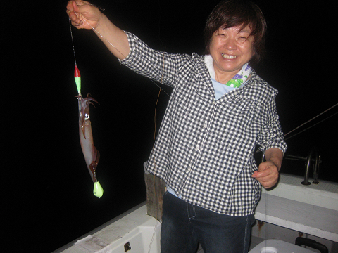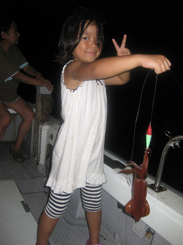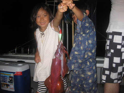 大阪市タカムラ氏ご家族 初めてのイカ釣りです。