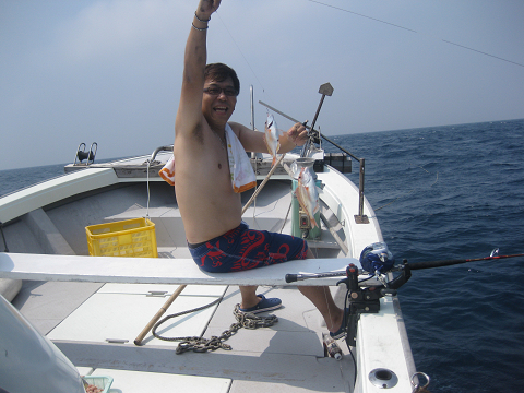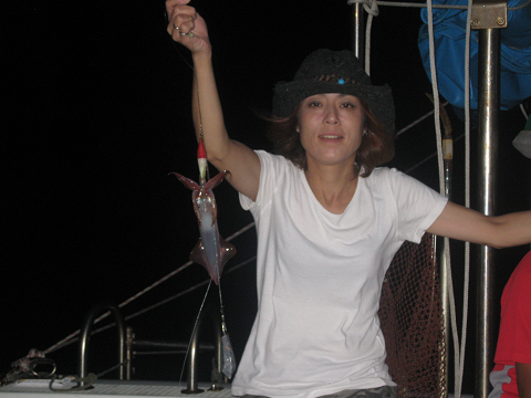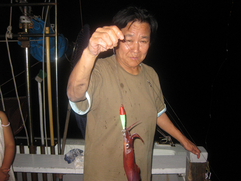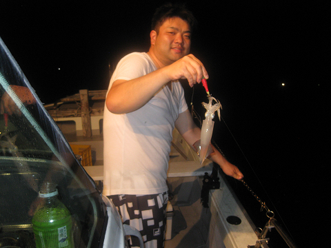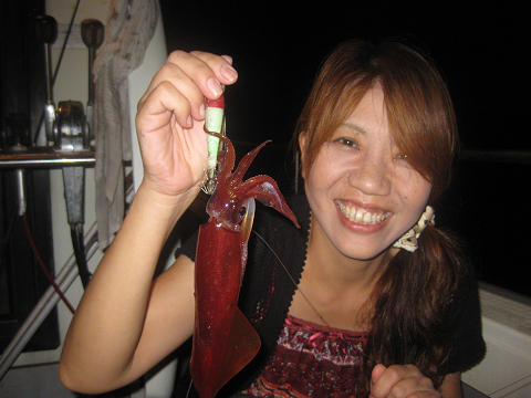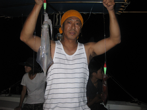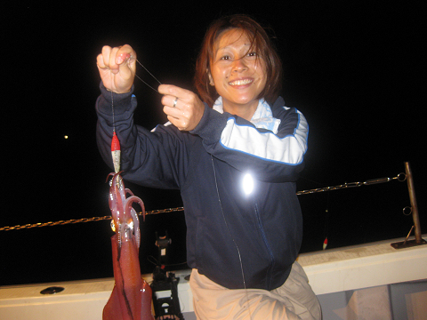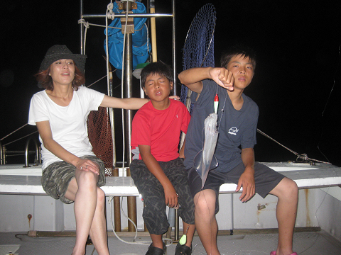 岡山のマキ氏、御一行様 皆様初めてのイカ釣りです。