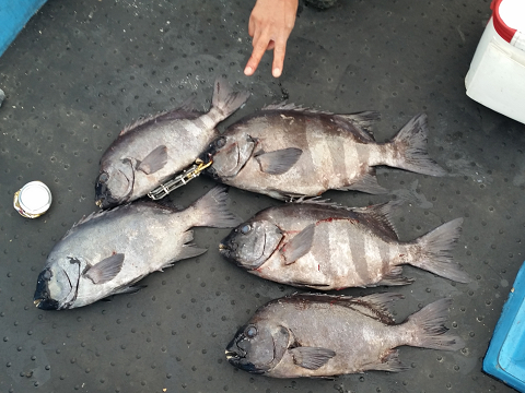 尾長グレ 46c(計測)、良型 他、ババイサキ、番外編でタコ(*^^*)笑