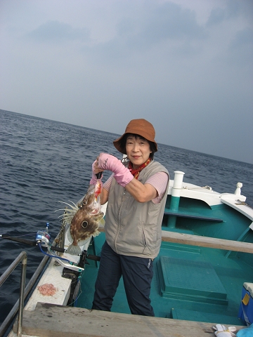 前日はひどい風と波で釣り辛く、そのうえ船酔いもあり早めに終了となりました。