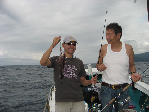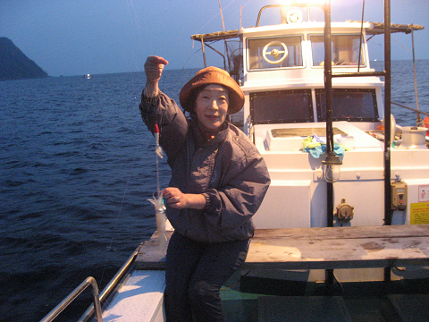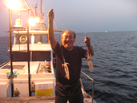 2時間半ほど釣りましたが入れ乗り状態で100杯ほど釣り上げ、帰ってから釣りたての白イカのお刺身や丸焼き・レンコ鯛のお刺身など美味しくいただきました^^