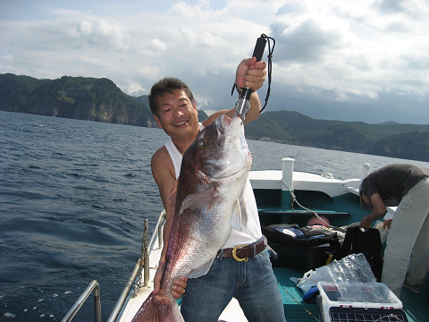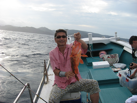 11時頃から釣り初め、開始して間もなく大鯛がヒット!タックルも根元まで絞り込まれながら無事フィニッシュ!よく引いた雄でした^^その後もアコウ・マハタを取り込んだところでポイント移動し青物を狙うことに。