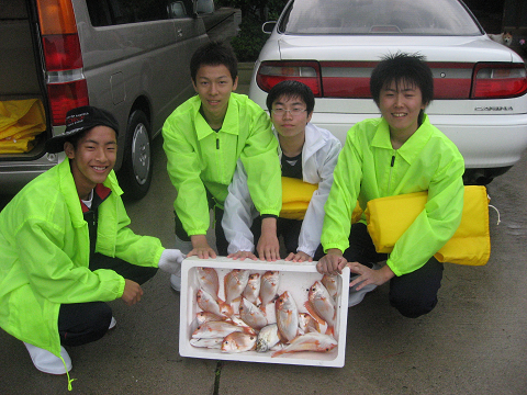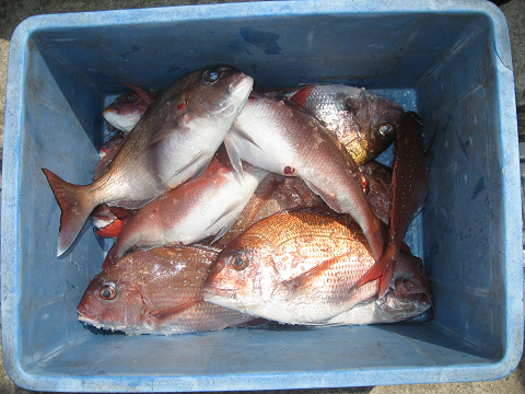 2日目は今回メインの真鯛釣り!開始2時間ほどはアタリが無く心配されましたが、待望の1枚を釣り上げた頃から頻繁にアタリ終わってみれば真鯛15枚とヒラマサも釣れ満足釣果となりました(^^)