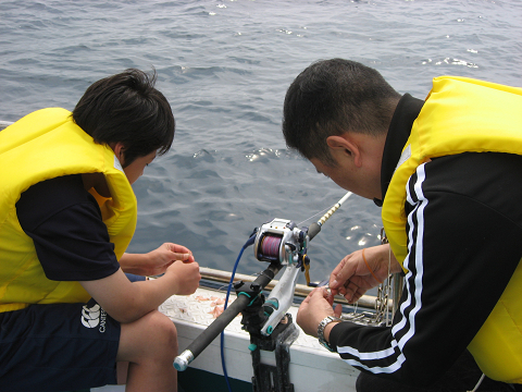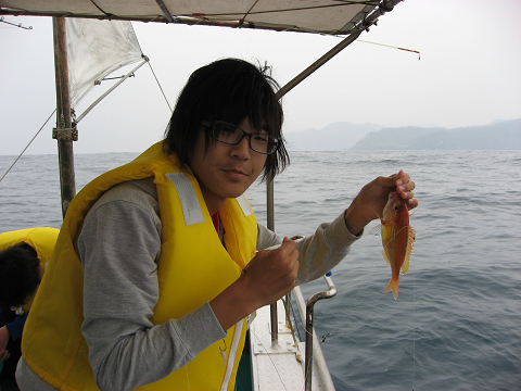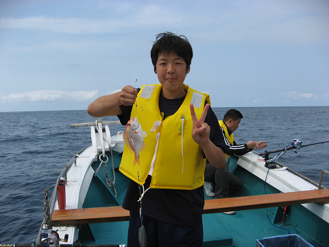 今日は風も無く多少ウネリはあるもののベタ凪となり沖へ出ての釣り体験をしました。全員船酔いしながらもみんな頑張って釣りました!