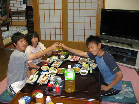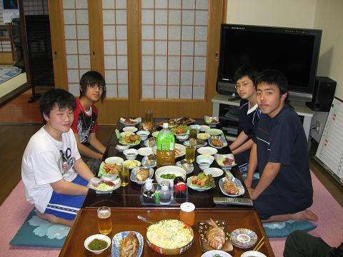 帰ってお風呂に入った後にはすっかり気分も良くなり、自分で釣った魚や、ほとんど初めて食べた事であろう海の幸を美味しそうに気持ちいいくらいガツガツ食べられました(^^