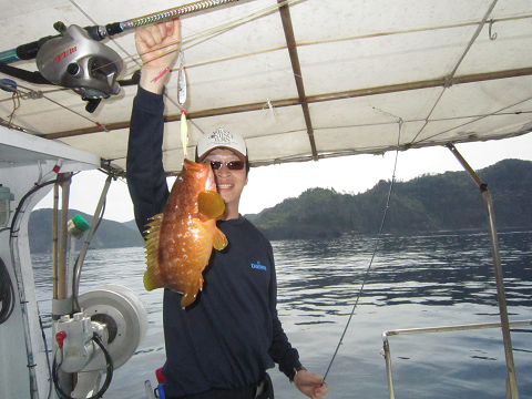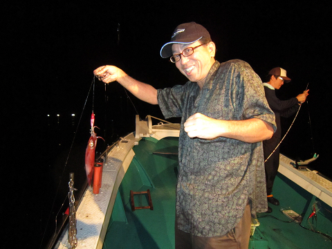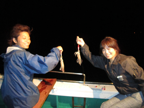 朝間に魚釣り!夜にはイカ釣りを堪能です。