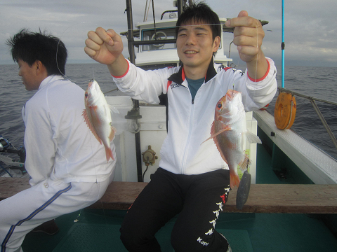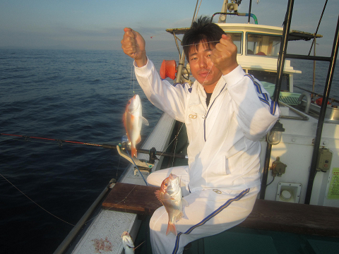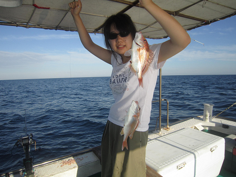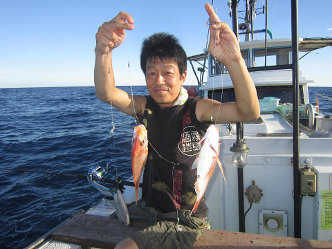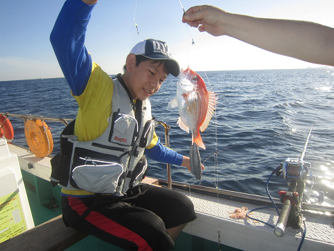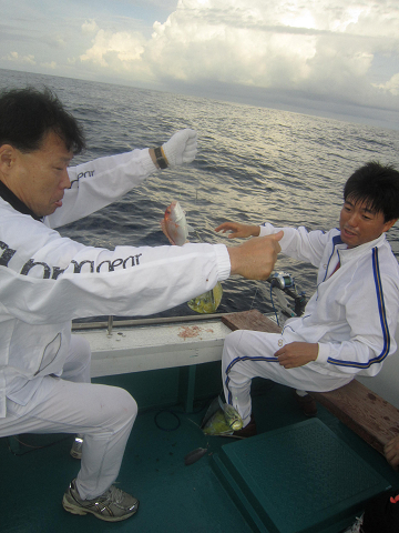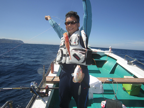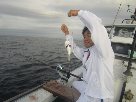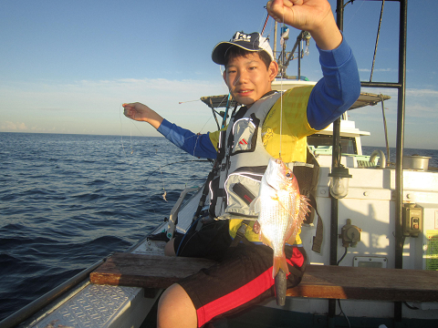 アジは釣れるのですが、餌には大きすぎ…小さいのは小さすぎ…ベストサイズの餌がほとんど揃わなく、なんとか使える餌で出来るまで釣って、餌が無くなれば他の釣りをする事にして沖へ!