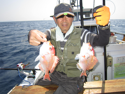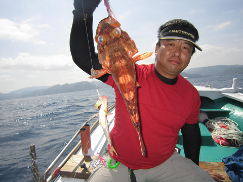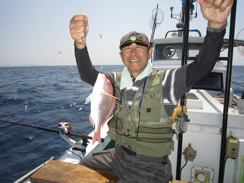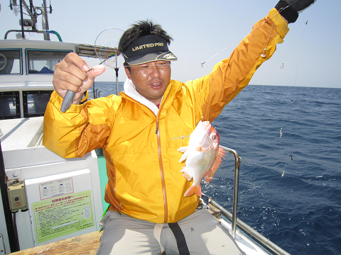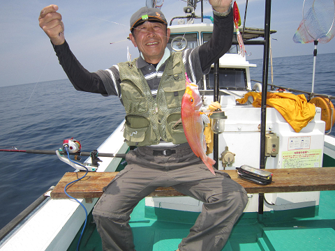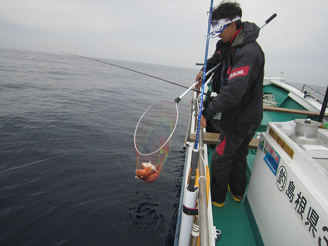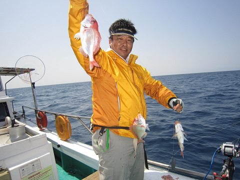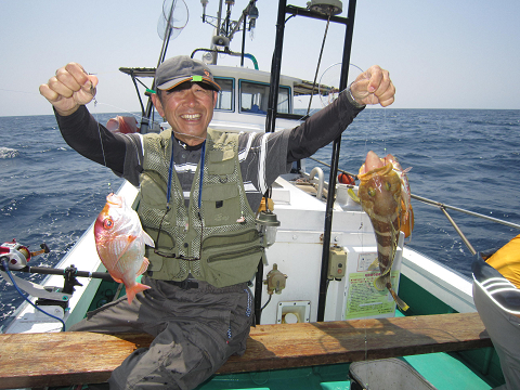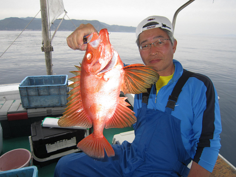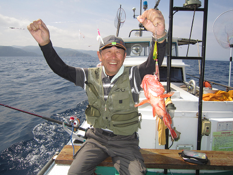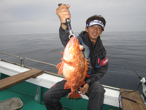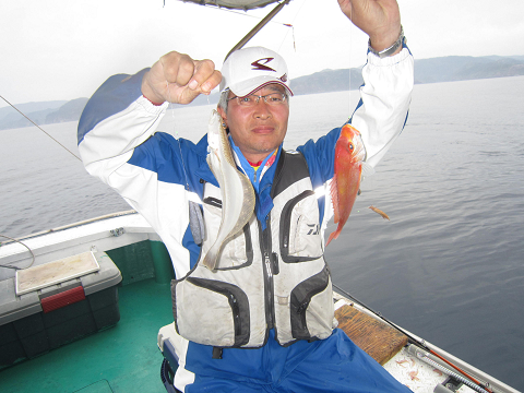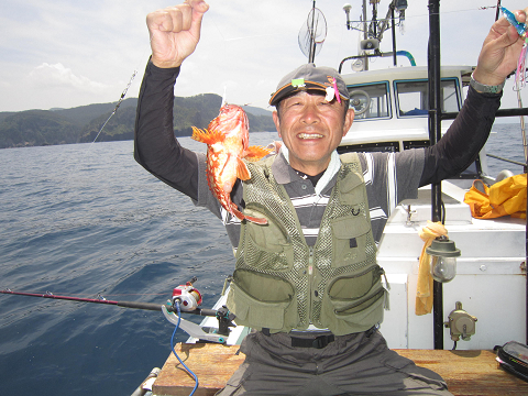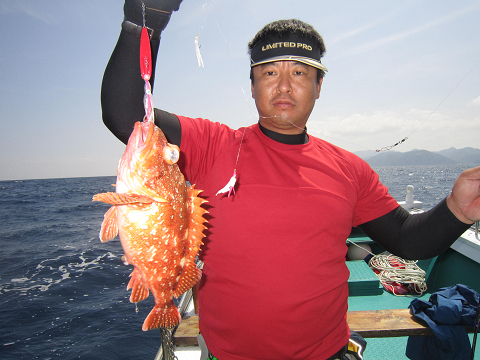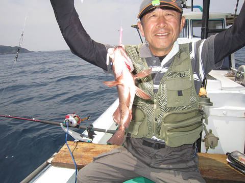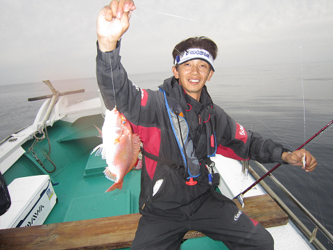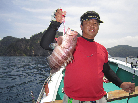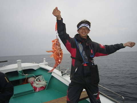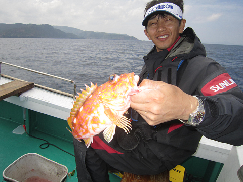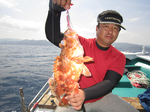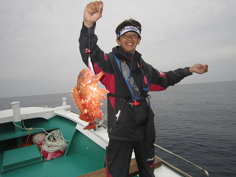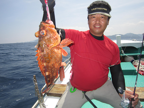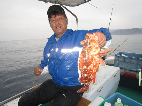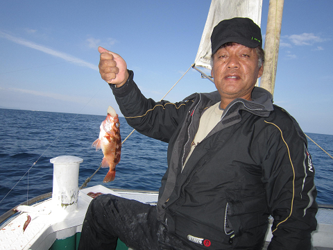 真鯛を釣り上げ、その後根魚釣りへ。