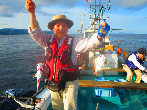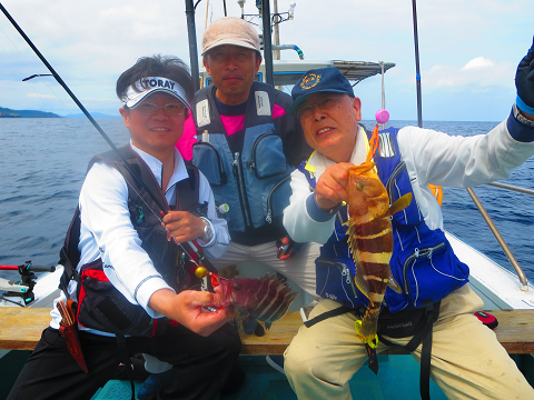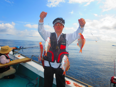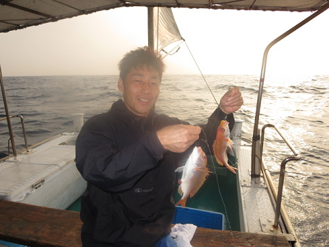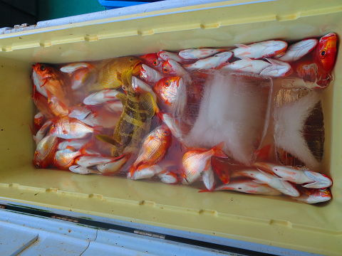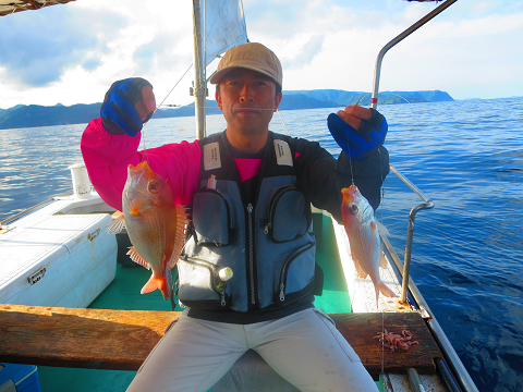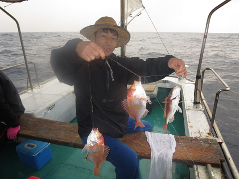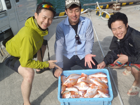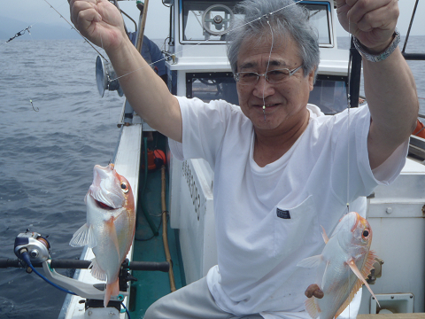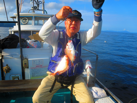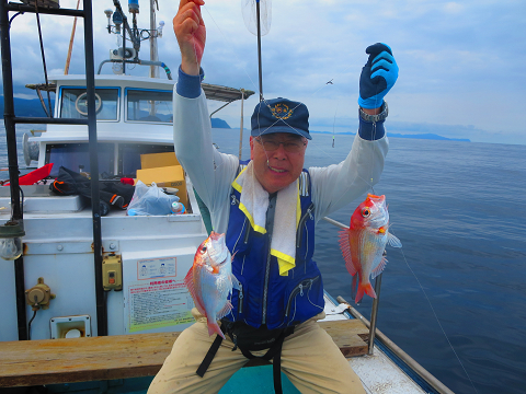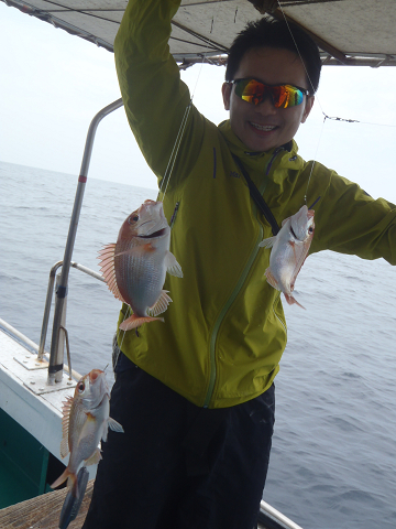 岡山市 三宅様御一行 レンコ鯛釣りに挑戦しました。 7名グループと言う事で僚船の白洋さんと分けての出船。 釣れるのですが、初心者と言う事もあり半分は船酔いダウン… 残ったメンバーでお土産確保して早上がりとなりました。