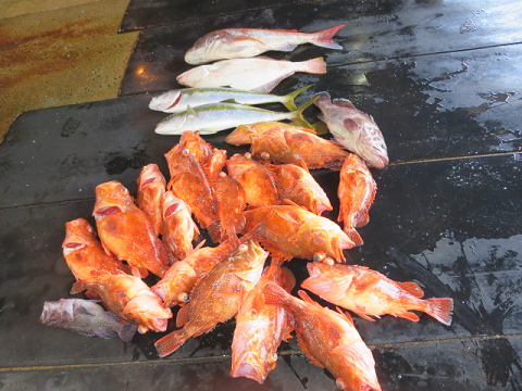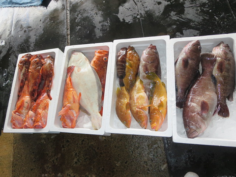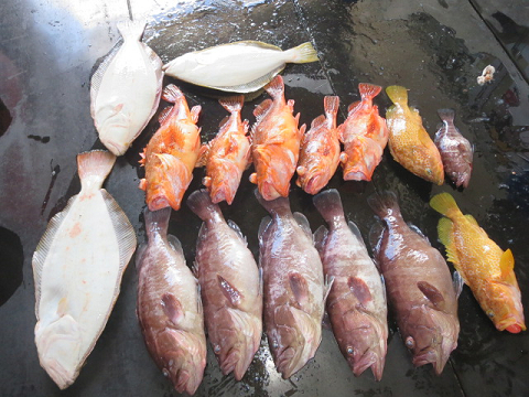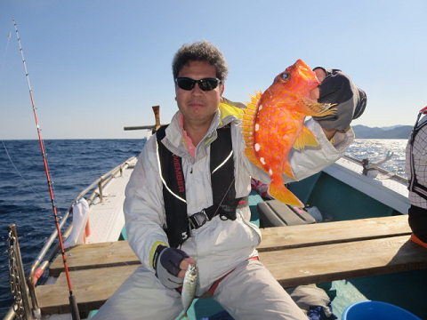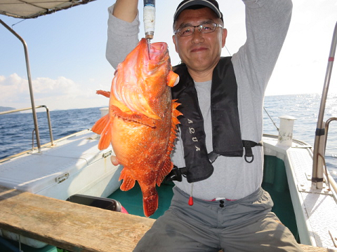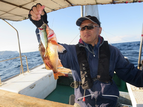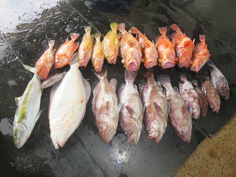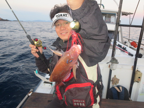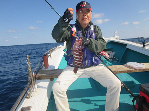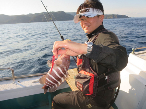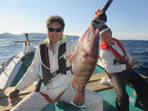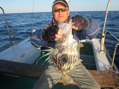 松江市 仲井貴義様 岡山市 山地弘様 米子市 徳岡広昭様 前日は磯釣りを楽しみ、本日は船から鯛ラバでいろいろと釣り楽しみました! マハタ・アコウ・アオハタ・マダイ・カサゴ