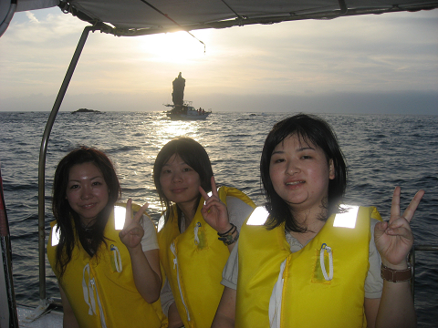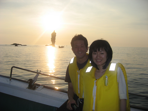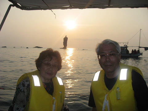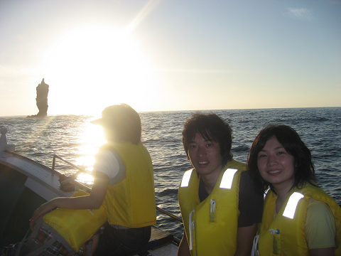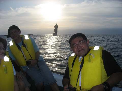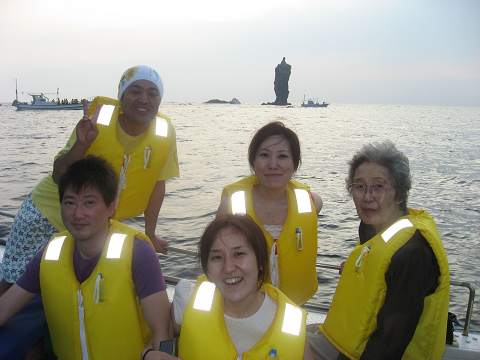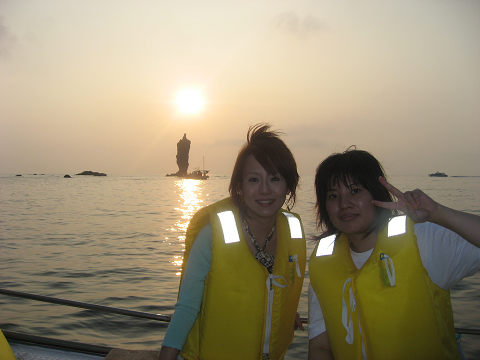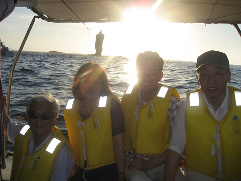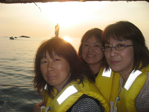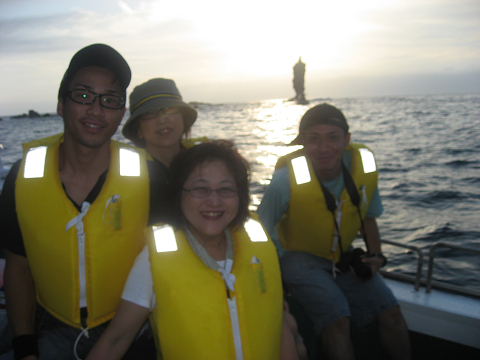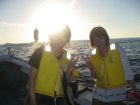 初日牛突きを見て2日目は日中は海水浴やキス釣りなどで楽しみいよいよ夕方ローソク島遊覧の時間となりました。