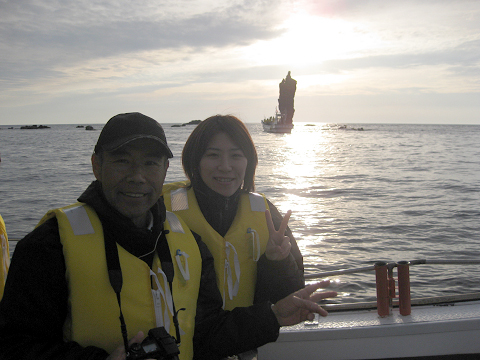 昼頃まで荒かった海も夕方になると落ち着き清光丸と2隻での出船で他の遊覧船は無し!