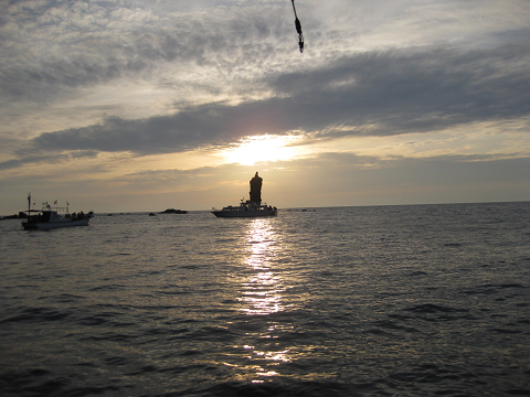 薄雲がありながらも夕日を見ることが出来楽しい遊覧でした。 |
