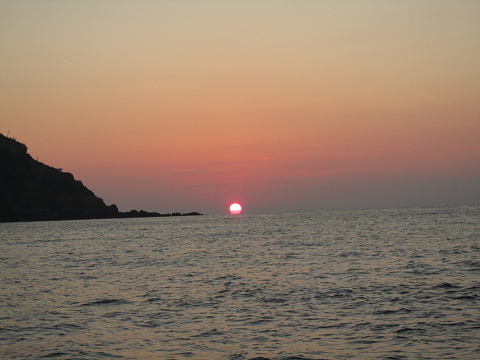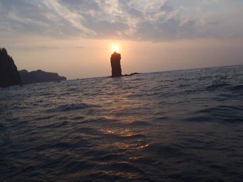 海に沈んで行く綺麗な夕日を見送り帰港しました。
