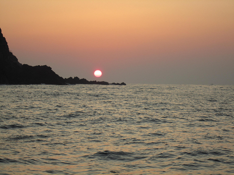 出船時にはぼんやりした夕日が出てますが、すぐに雲隠れしそうな天気。