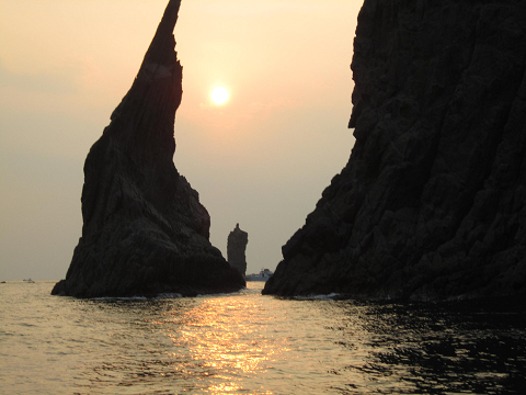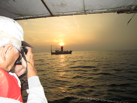 ローソク島直行で船を飛ばして向かいますが、やはり暑い雲の中へ入ってしまい夕日は残念ながら…