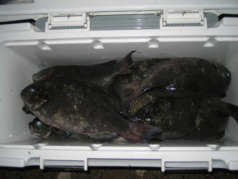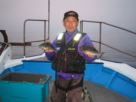 隠岐の島町岬町 本池久雄さんら2名様 場所 代の平島 こちらも数がすごいです! グレ25〜32センチ60匹、チヌ40センチクラス、スズキ80センチクラスなど