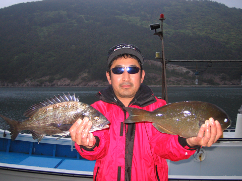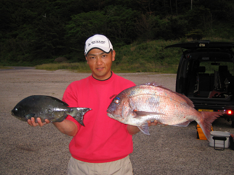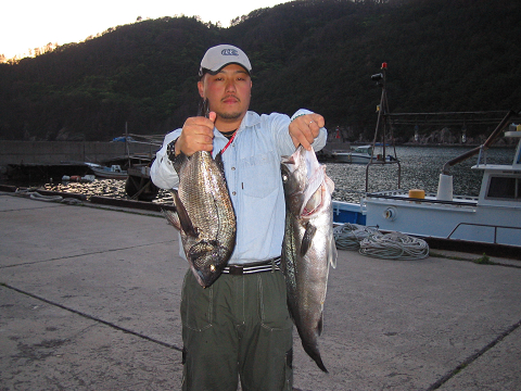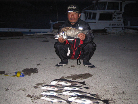 福田さんもナイスサイズの 尾長とチヌをGET!!