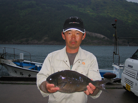 久見の黒島では大きなウネリが入り、しかも潮行かずのフグ多しの厳しい状況でなんとか尾長38cmを上げ、ウネリもだいぶ落ちて昼から代の黒島へ。