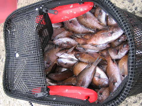 モブシ(スズメダイ)バッカン2つと、クーラー1つ満タン |