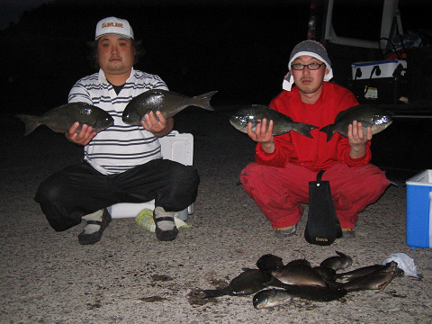 昨日は潮も悪く、明るいうちにはチヌ1枚でした。夜には真鯛に期待しましたが、チヌを2枚追加!明けて潮もあまり良くなりませんが、チヌを5枚追加!少しポイントを替えて大物が2枚ヒットするも残念ながら針外れ…