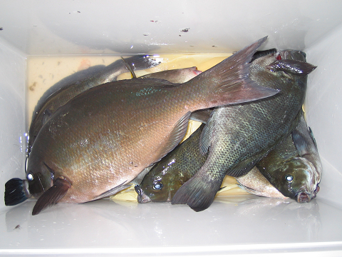 午前中は、潮も適度な流れの中、いい感じで グレが食ってたそう。午後から潮が止まり食いがガタッと落ちたそうですが、これだけ釣れば最高です^^