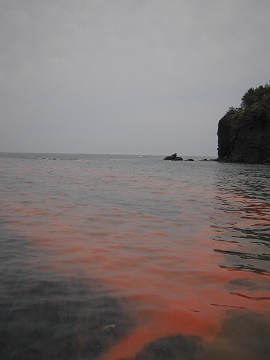夜母瀬グリ付近には、赤潮が溜まり海面が真っ赤に染まってました、そりゃ〜これでは厳しいでしょうね〜。