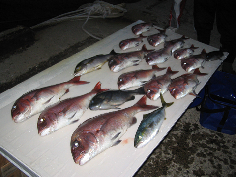 狙いのヒラマサは当たりませんでしたが、今日も真鯛多数にイサキ・グレ・ハマチなど良い釣果でした^^