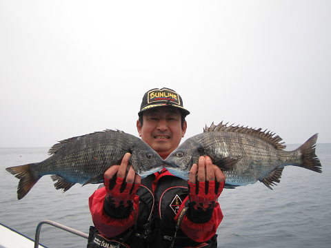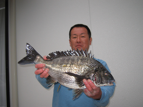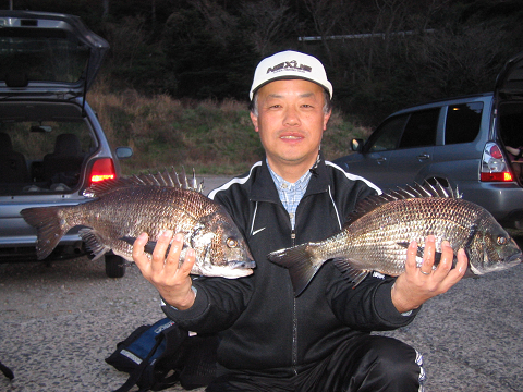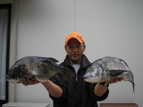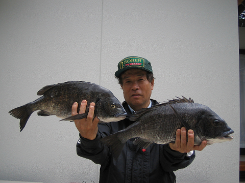 グレは出て来ませんでしたが、3枚の良型チヌを釣り上げました。