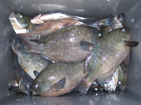 代わりに良型のチヌを3枚釣りましたが、キープしておいたバッカンがひっくりかえってしまい50cmクラス2枚を自動リリースしたようです。