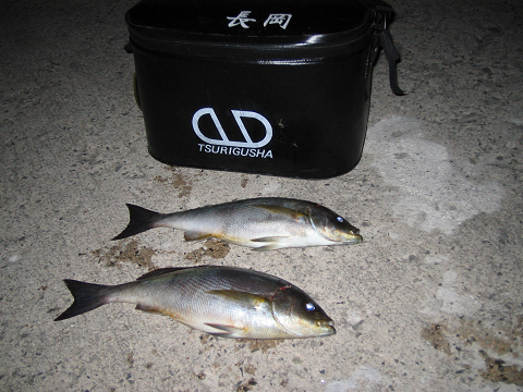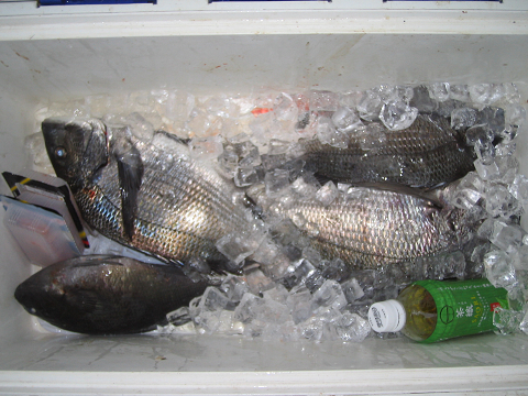 二日目は夜母瀬来でそれぞれチヌ良型数枚釣り上げました。