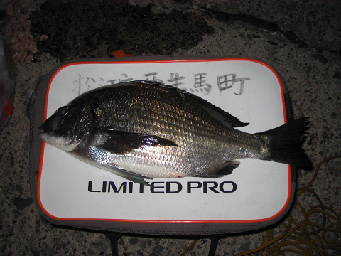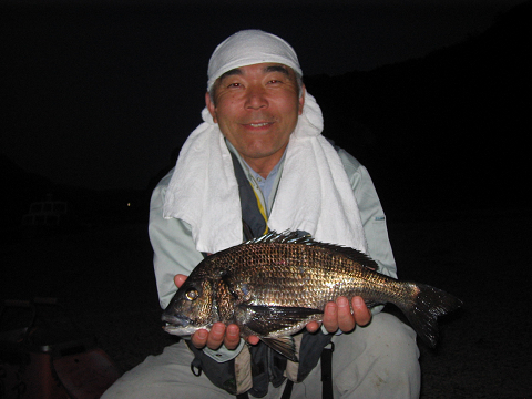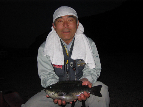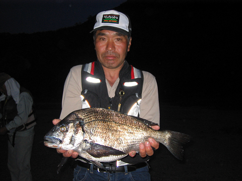 日暮れ頃から本潮の激流となり早過ぎる潮で釣り辛い中ではありましたが、夜中にチヌ・石鯛の良型ヒット!