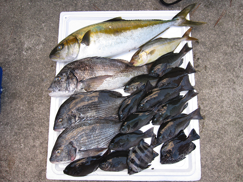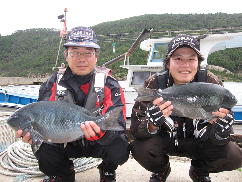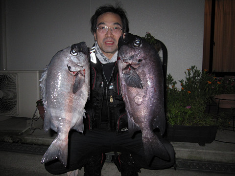 水深は竿一本ちょい、のんびりチヌやグレでも釣れれば!と、狙ってると、開始間もなく「ホイッ!来たで〜」良型のチヌがすぐさまヒットします!その後もチヌ・グレをポツポツ拾っているうち、弟に来たのはチヌやグレの“それ”とは明らかに違う引き!走り!