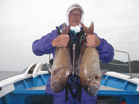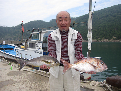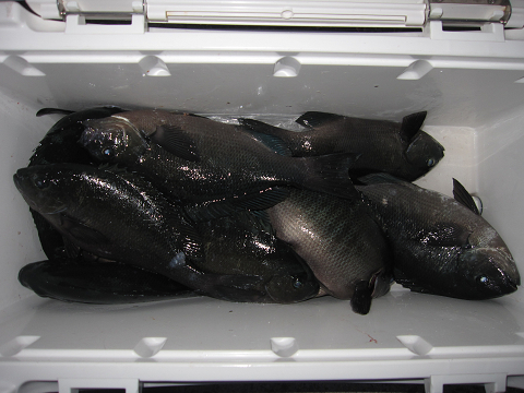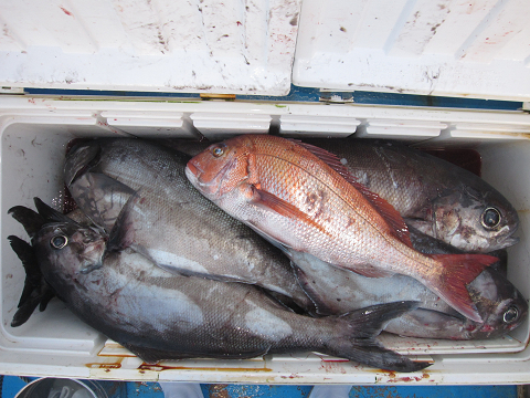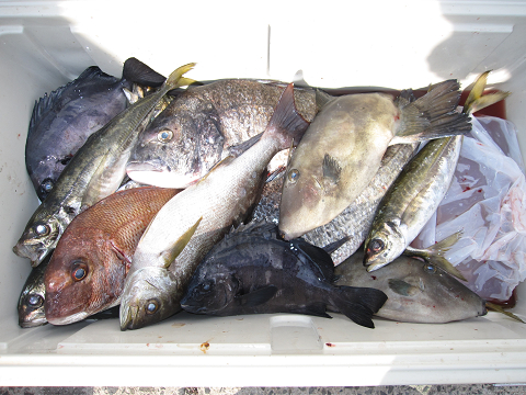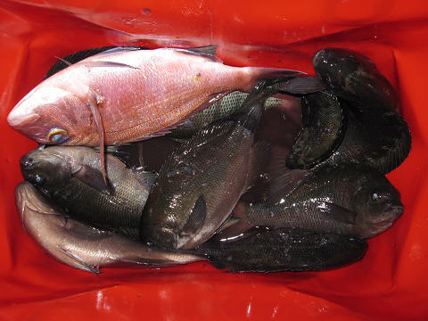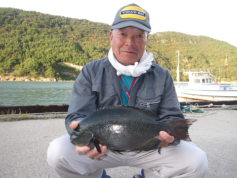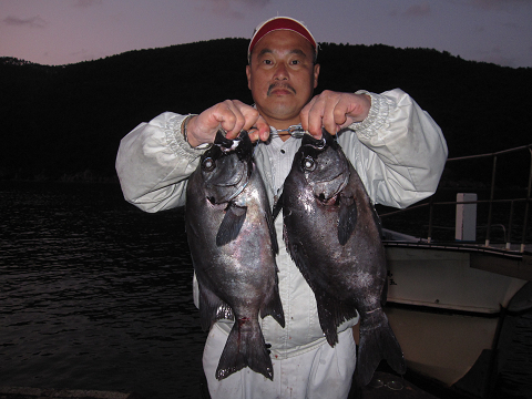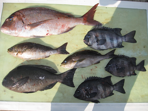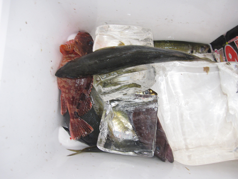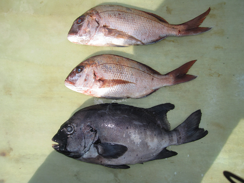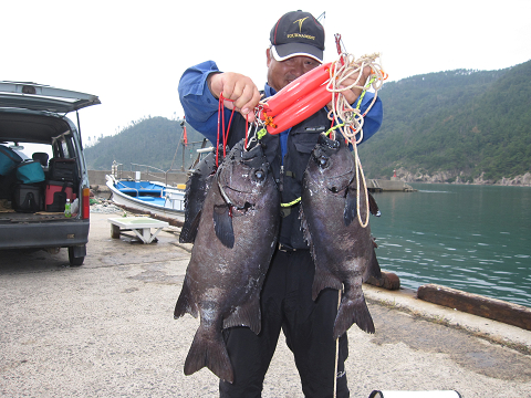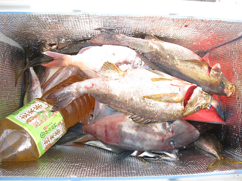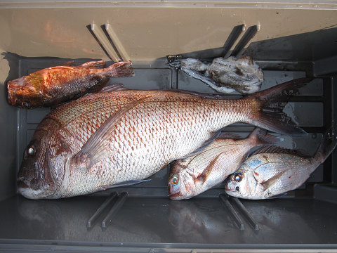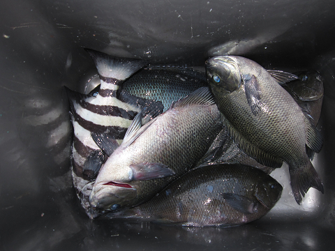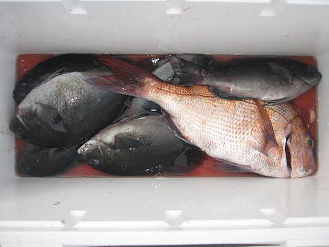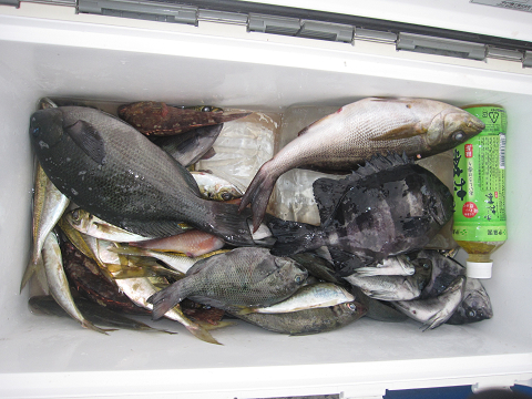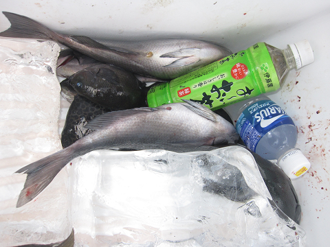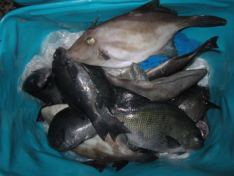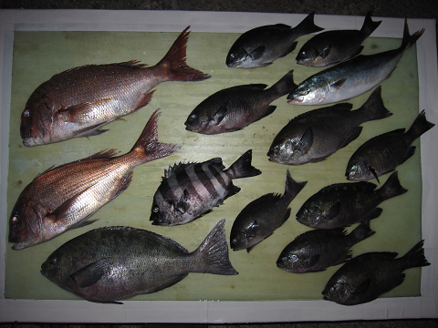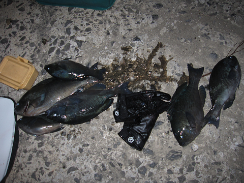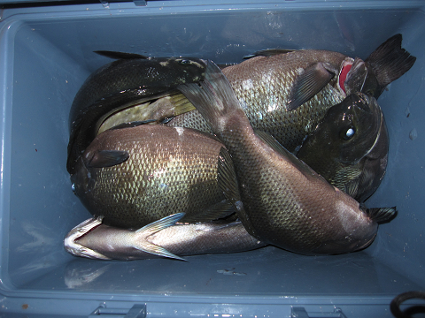 渡礁後早速だが前々日から隠岐入りしていた仲間の宮野さんから釣りたてホヤホヤ石鯛の差し入れ♪
