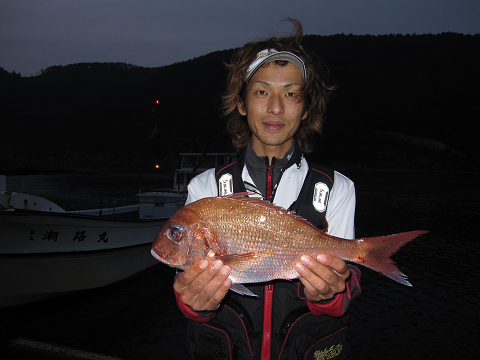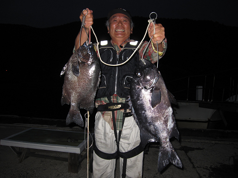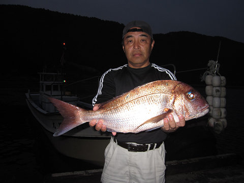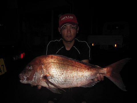 夜釣りの定番であるアジが時折消える時合いに天堀さんが掛けた大物!