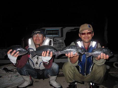 飛行機入りでいろいろと準備して日暮れから磯上がり、まずは夜の上物狙いから。