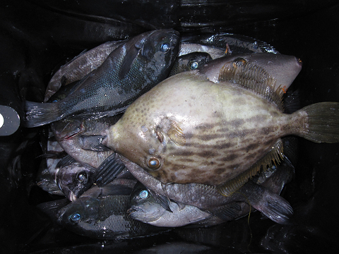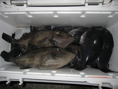 夜が明け12日は底物狙い3人上物狙い1人で頑張りますが、今度は潮が激流となり難しい状況となってしまいました。