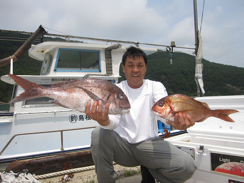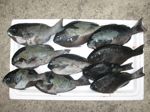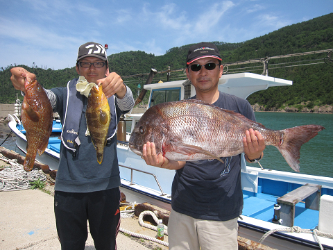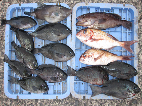 まあまあの潮から渦を巻く超早潮までいろいろだったようですが、良型真鯛にグレに楽しめました♪