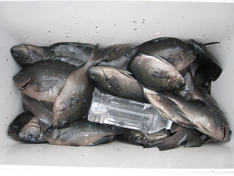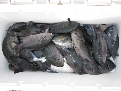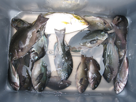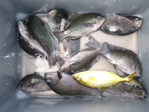 セイゴ〜スズキクラスが入れ食い♪コマセ釣りではグレが30cm級頭に結構釣れるようです。