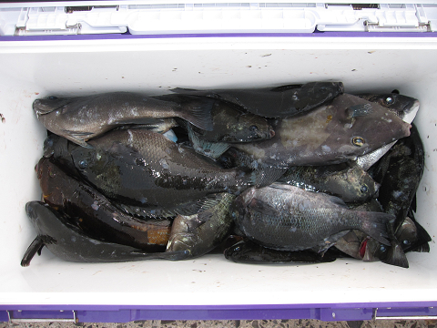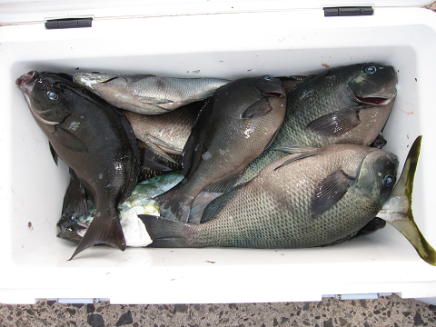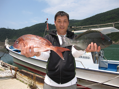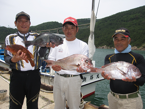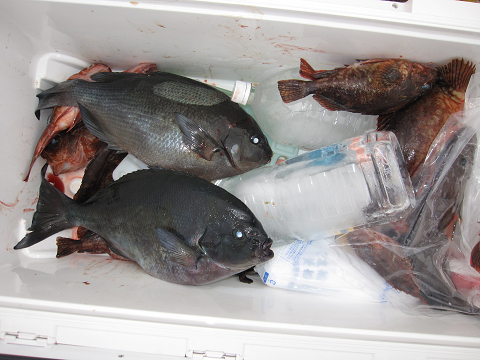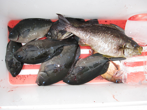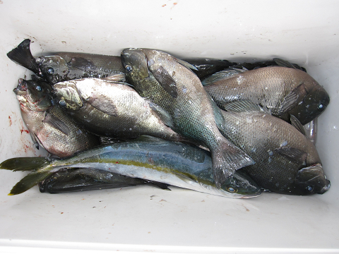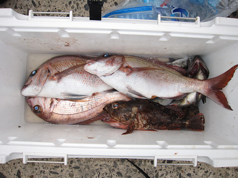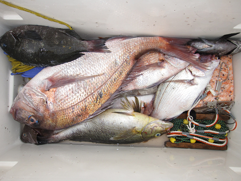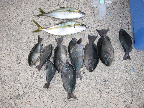 今回も1発長時間のやりとりの末にとうとう切られてしまいましたが、「多分ヒラマサ」見事に大鯛を仕留めリベンジ成功です!他にも大型・イサキ・グレ・真鯛で楽しみました(嬉)