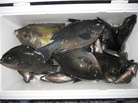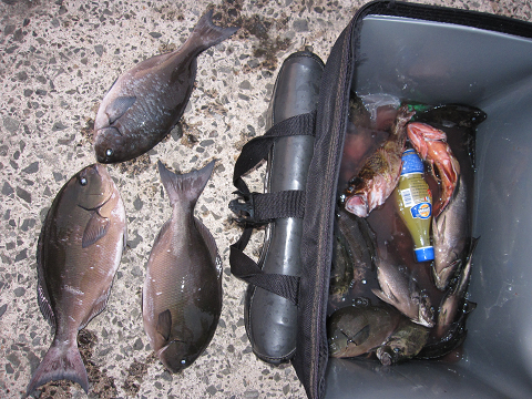 しばらくの間、あまりにも釣れないので、水の出入りはありますが池のような場所でボッカでも釣ろうかと狙うと、うまく行きボッカを釣っていると、いきなりビックリする強い引き!!上げてみると何と尾長グレ(驚)さすがにその池で追加はありませんが、終わってみるとそこそこな釣りとなりました。