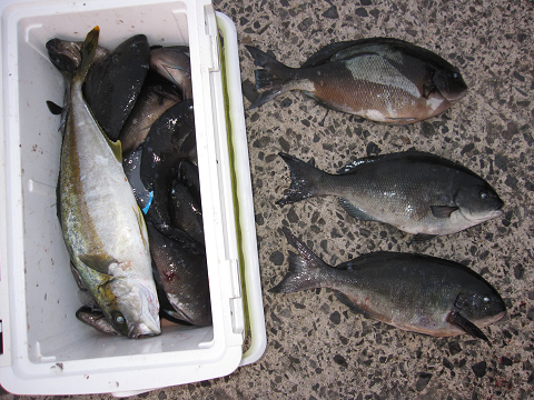 グレは丸々とした美味そうなのをゲットしましたが、ヒラマサには2回切られました。