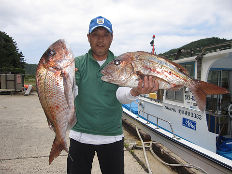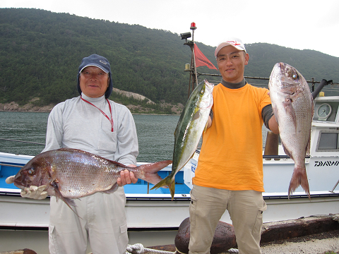 尾長40UP2枚に良型の数釣りを楽しめ、真鯛も混じりました♪