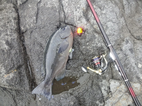 風裏の湾内磯での釣りでしたが、納得の1枚が来てくれました!