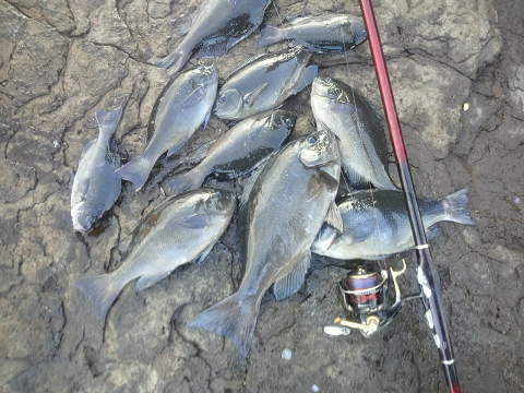 仕方なく普通やらない釣り座から無理やりの釣りでした。
