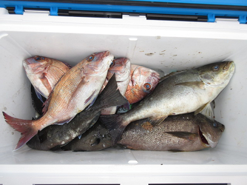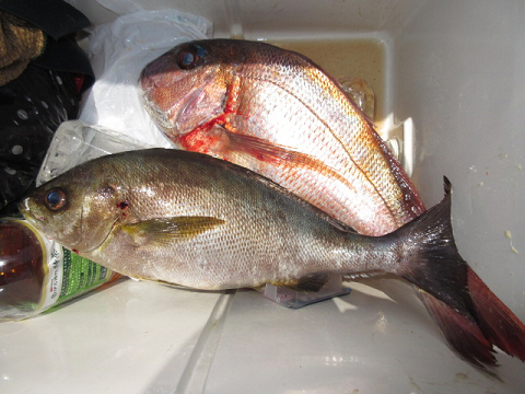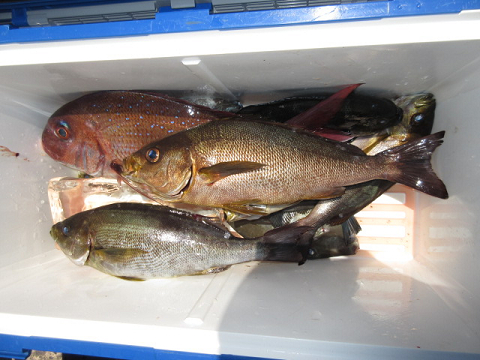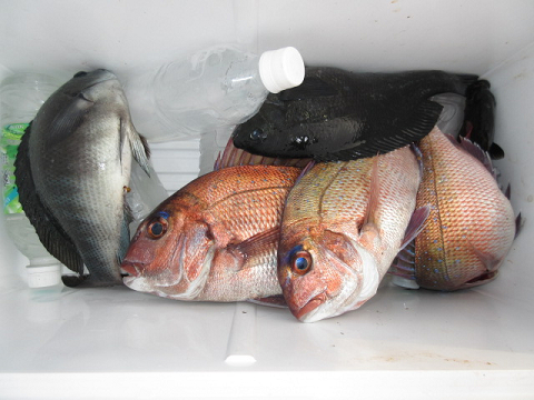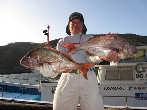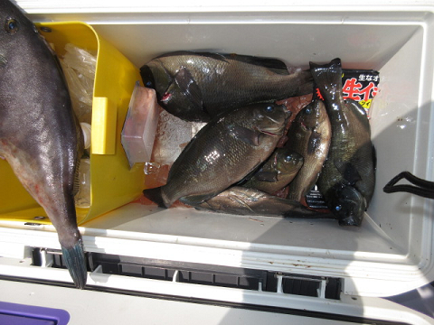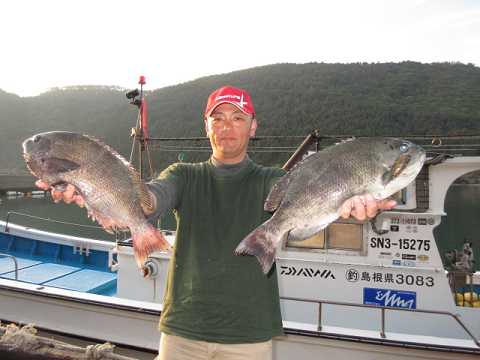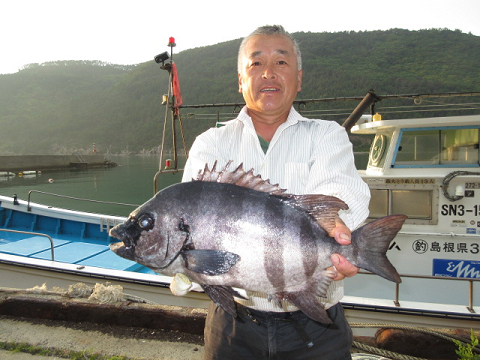 チヌ釣行2日目の午前半日、前日も話したように今回はあくまでもチヌ狙い、メンバー内で真鯛を釣ったら罰金!というゲームがかかってるのだ(笑)でもここは隠岐!何時来てもおかしくないのが大型の真鯛ですが、3投目だったようです!「いきなり来るだもんや〜!!」来てしまった大鯛と長時間のバトルとなり寄せに入るまでもっていったようですが、あとちょっとで…、隣の島のメンバーにも大鯛ヒット!チヌ竿にハリス1.5号じゃどうにもならない大鯛…「罰金払ってでもやっぱり掛けたら獲りたかったな〜!」などと(笑)今回のメインであるチヌは大型主体にしっかり釣っておられましたよ〜♪「来月は毎週誰かが来るけん!真鯛で〜♪」(笑)