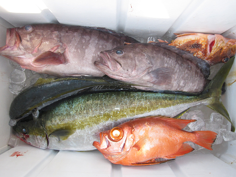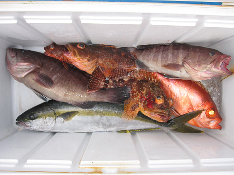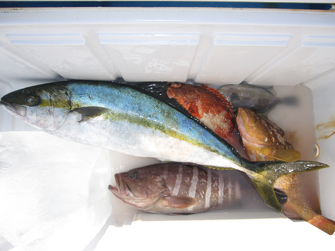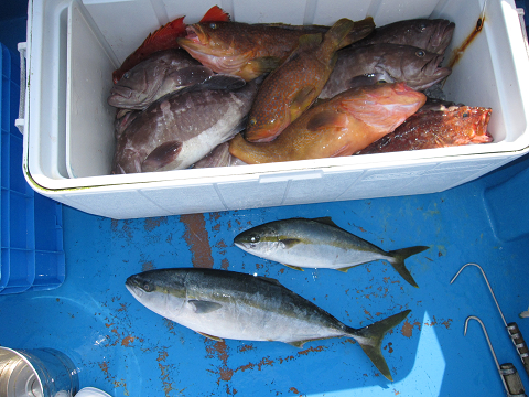 何とか本命のヒラマサも顔を見せれば根魚も数匹追加したところで竿納としました。