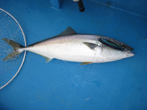 ポイント3カ所目では、最近になったようやくちらほらと見かけるようになったトビウオが何かに追われるのを確認!テンションは上がります!!数回バイトがありヒットにようやくヒットに持ち込んだのは良型のブリでした。