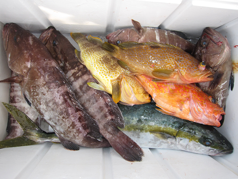 ところが移動するとこちらは潮止まりでなかなか口を使いませんが何とかヒットに持ち込みマハタ・アコウGET♪この時ジグに待望のヒラマサもヒットしましたが残念ながらラインブレーク!良型だっただけに残念…「悔しぃ〜〜〜!」