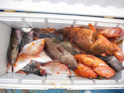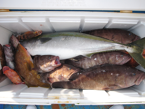 マハタ・マトウダイ・レンコ・チダイなど魚種も増えクーラーは賑やかに埋まり昼までの半日釣行を終ってみれば結構な漁になりました♪